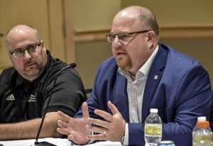 Tammy Wilson, local Director of BBBS, speaks to the Garden City Community College Board of Trustees Tuesday night. MEGHAN FLYNN/GARDEN CITY TELEGRAM