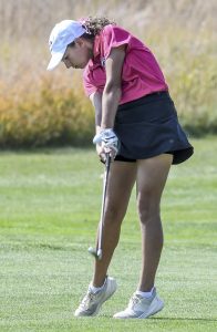 Garden City Community College’s Danielia Nogueira heads to the floor to dig a Pratt serve Wednesday during a volleyball match at Perryman Athletic Complex. The…